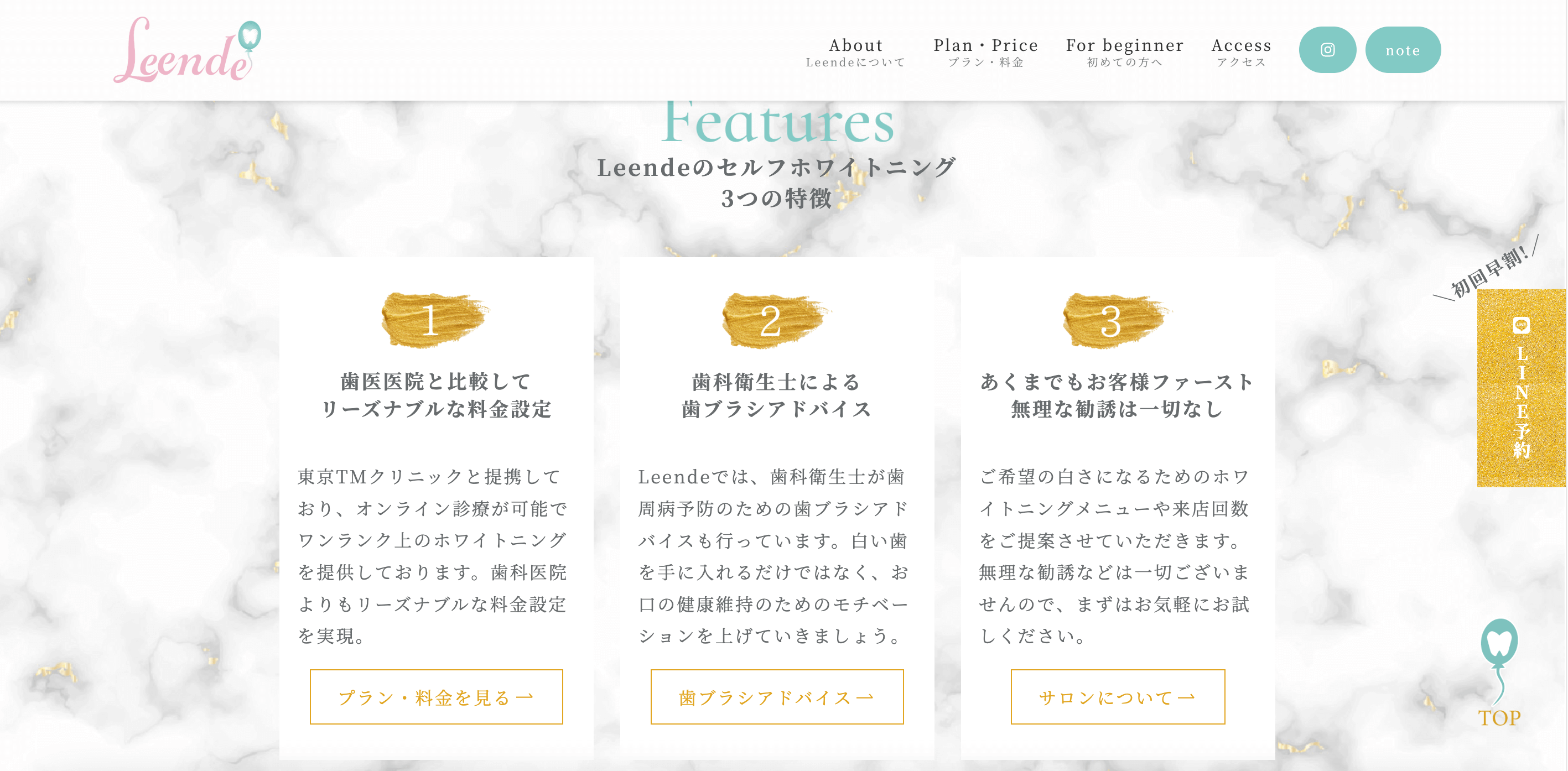ただし効果を持続させるためには継続が大切。だからこそ「安さ」だけを打ち出すと、体験とのギャップが生まれる可能性があります。そこでデザインでは大理石のテクスチャやゴールドのアクセントを取り入れ、適度にラグジュアリーな雰囲気を演出しました。
